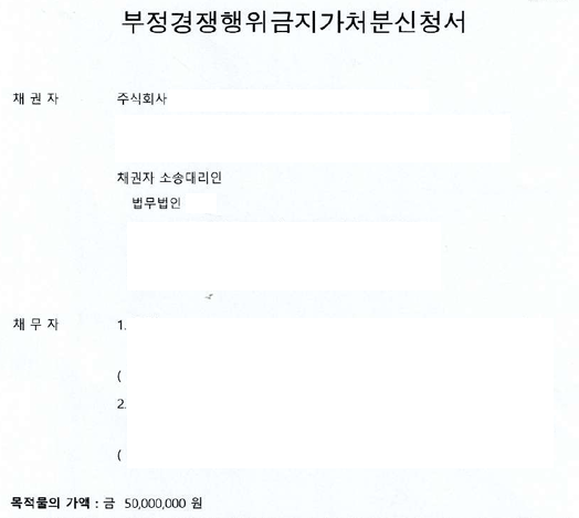 상대방(채권자)이 제출한 가처분신청서, 피보전권리가 5,000만 원이었습니다
