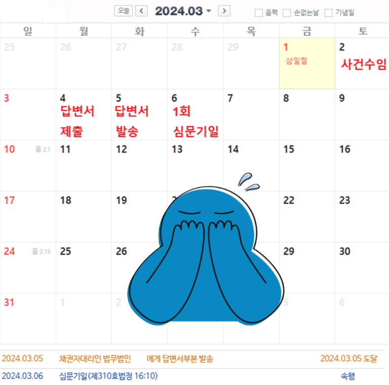 문제는 사건을 수임한 것이 토요일이었는데, 사건의 심문기일은 바로 다음 주 수요일이었다는 점입니다. 덕분에 저는 답변서를 준비하는데 몰두하기 위해 주말을 반납하였고, 월요일에 상세한 의견을 담은 답변서를 제출하여 화요일에 상대방(채권자)가 답변서를 받아볼 수 있게 하여, 1회 심문기일에 부족함없이 임할 수 있도록 준비하였습니다. 답변서는 물론 (형식답변서가 아니라) 대형로펌 시절의 업무퀄리티에 맞추어(사실 그 이상으로) 제가 봐도 충분하다 싶을 정도로 준비하였습니다.
