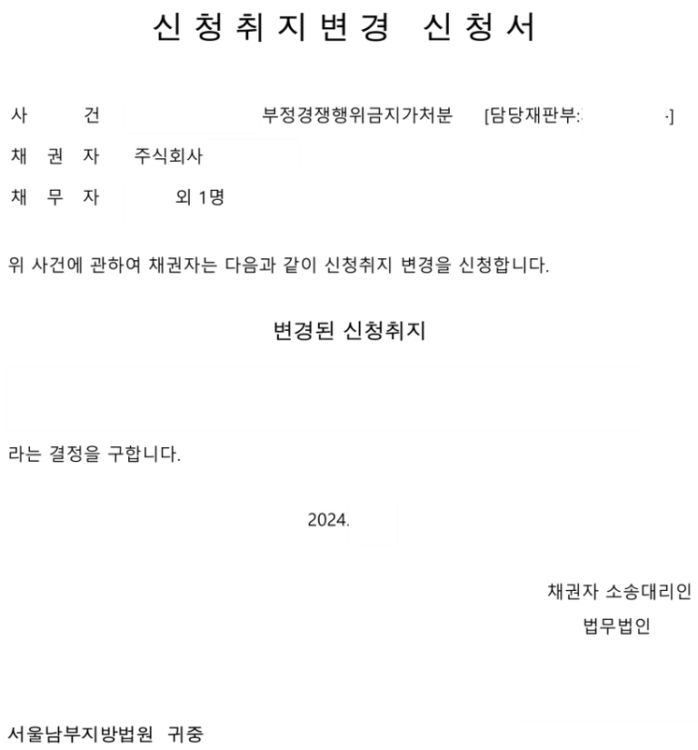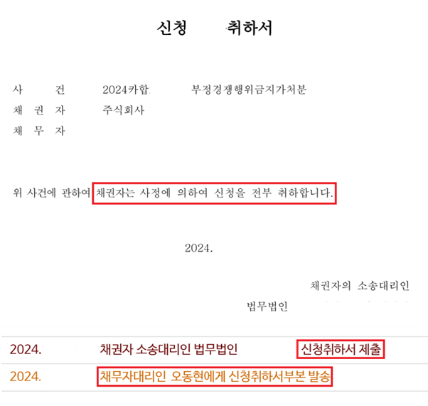 마침내 상대방(채권자) 측 법무법인은 꼬리를 내리고야 말았습니다. 신청을 전부 취하한다는 내용의 신청취하서를 제출한 것입니다.