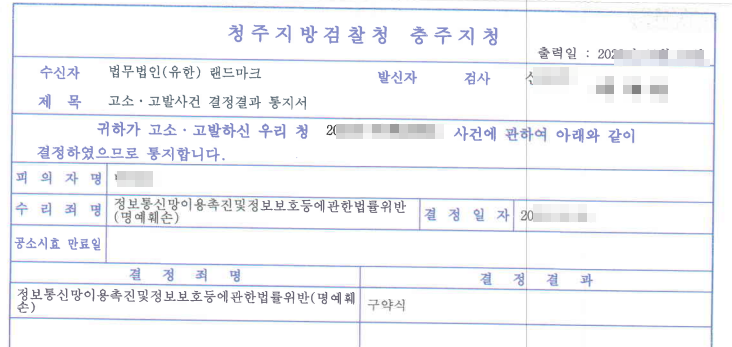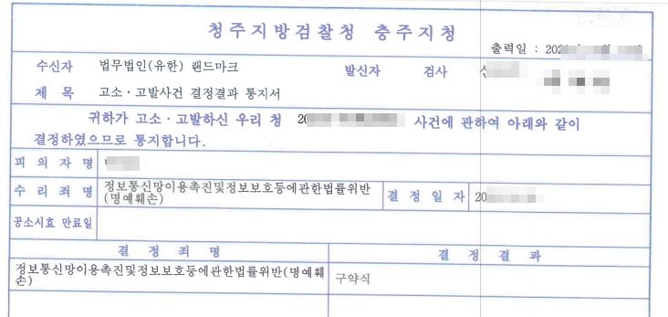 수사관님은 변호사의 요청을 이해하셨고, 고소인 조사 이후 진행된 피의자 조사에서 '게시글을 모두 삭제해 달라'라고 전달하시어 직접적인 피해 확산을 막을 수 있었습니다.