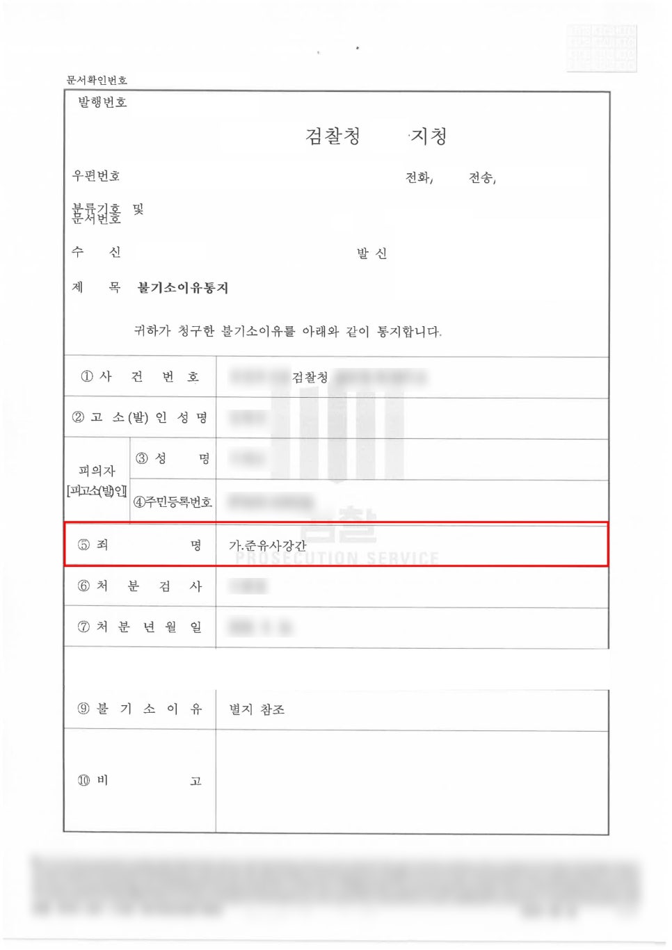 혐의없음 불기소이유통지서