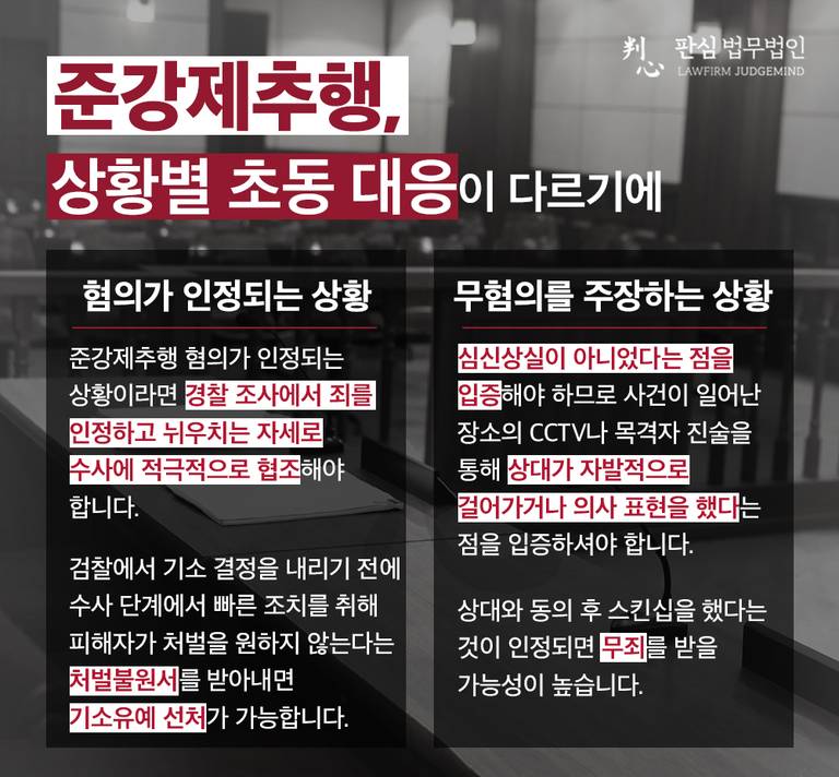준강제추행과 같은 성범죄는 정확하고 신속한 상황 분석이 우선되어야 합니다. 그래야만 경찰 및 검찰 등