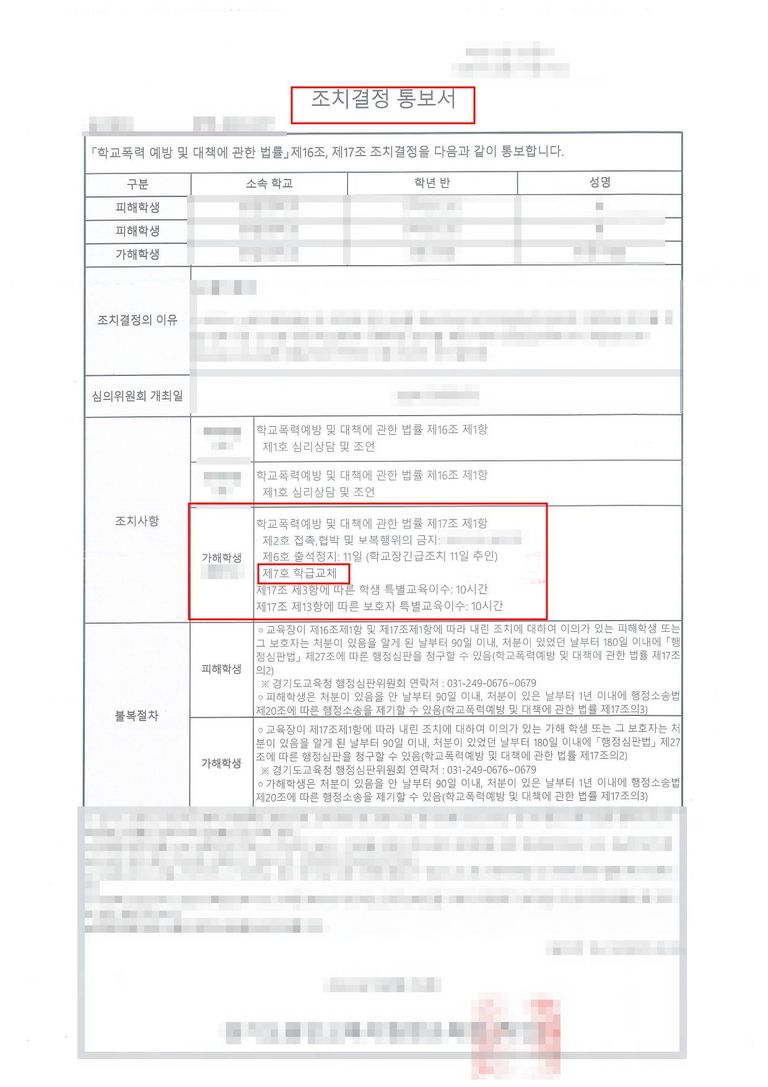 학급교체 처분을 받은 사안을 말씀드리겠습니다.