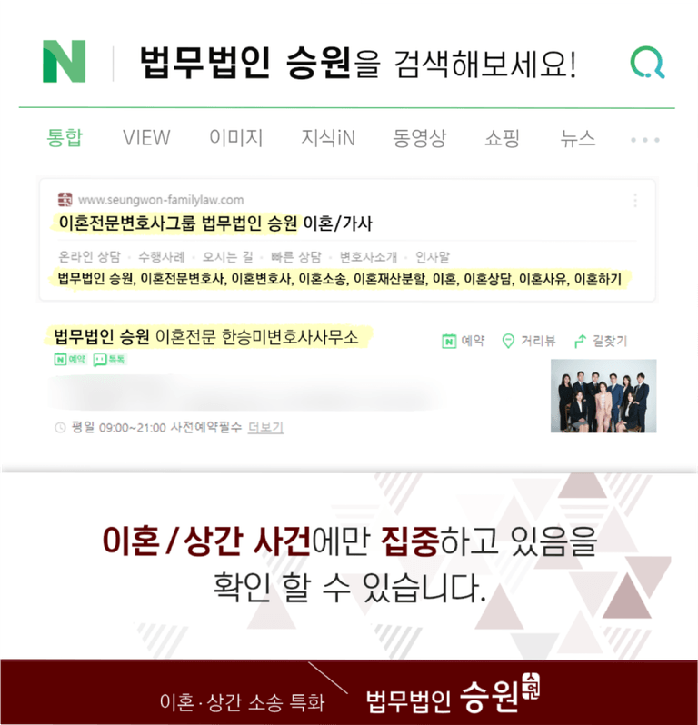 이혼 및 가사 사건 특화 법무법인 승원의 한승미 대표입니다.