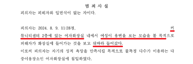 고등학생 A군은 2024. 8. 9. 11:28경 아파트 커뮤니티 독서실을 가다가 여자화장실로 들어가는 여중생 B양을 발견하였습니다. A군은 순간적으로 호기심이 생겨 B양을 뒤따라 들어가 옆 용변칸에서 변기를 밟고 위로 B양을 훔쳐보다가 B양과 눈이 마주쳤습니다. A군은 화들짝 놀라 서둘러 도망쳤지만, 너무나도 무서워 다시 여자화장실로 돌아갔고, B양의 신고를 받고 출동한 경찰에게 모든 사실을 털어놓았습니다.