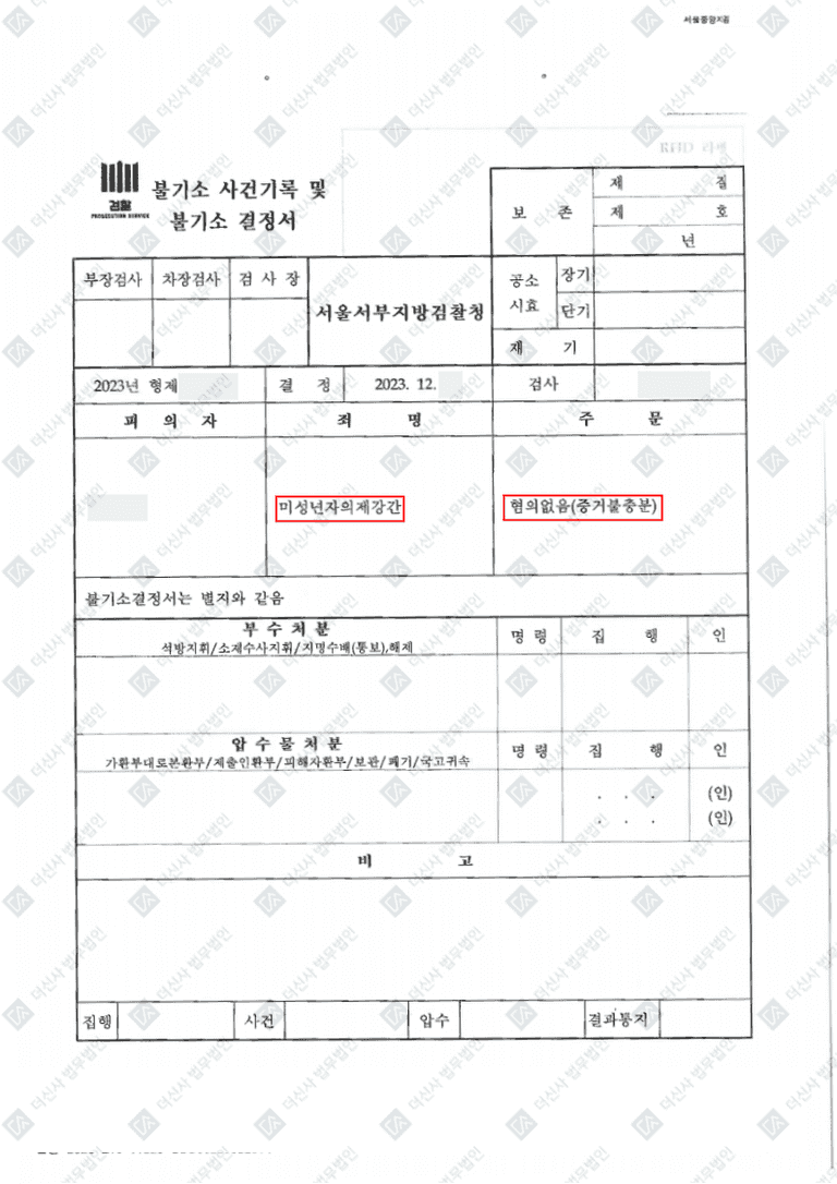 벌금형이 없는 사안이기에 무혐의를 목표로 사건 진행