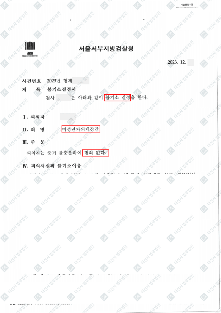 의뢰인은 더신사 법무법인의 성범죄 솔루션을 통해 불기소라는 매우 성공적인 결과를 얻을 수 있었습니다.
