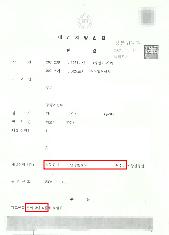 저는 결국 의뢰인을 대리하여 상대방을 연인 대여금 사기로 형사고소하였고, 오랜 시간이 지난 후 상대방은 징역 3년 6월에 처해졌습니다.