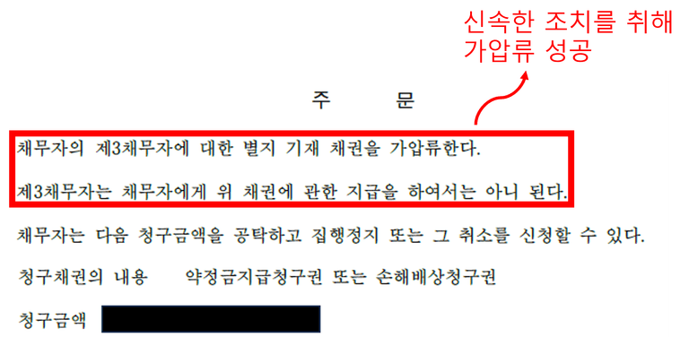 권용범 변호사는 재산확보를 위한 신속한 보전조치가 필요하다는 판단 하에 의뢰인과 함께 가해자의 재산 상태에 관해 긴밀히 협의하였습니다. 그리고 가해자(채무자)에 대해 손해배상채권이 있음을 근거로 가해자가 향후 받게 될 가상자산채권 에 대해 수일 내 신속히 가압류 신청서를 작성하여 법원에 접수를 완료하였고, 가압류 결정이 인용될 수 있도록 다량의 소명 자료(증거 자료)를 함께 제출했습니다.