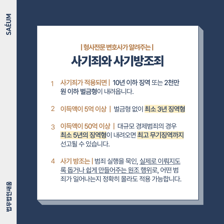 특히 주의해야 할 것이 바로 사기 방조인데요. 자칫 직접적으로 범죄로 인한 이익을 취한 것이 없음에도 그저 같은 곳에서 업무를 보고 일을 했다는 이유만으로도 억울하게 처벌받을 수 있는데요.