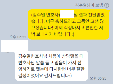 저희를 찾아주신 의뢰인분의 감사 카톡 후기입니다. : )
