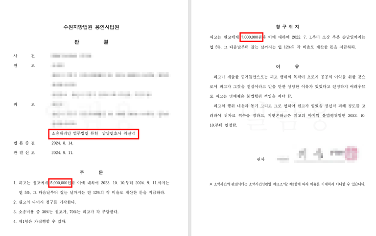 의뢰인은 이처럼 변호인의 조력을 받아 소송을 진행한 결과 청구액에서 2,000,000원을 감액받는 결과를 얻을 수 있었습니다.