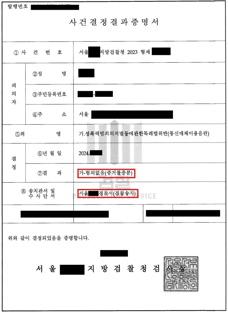 통신매체이용음란혐의에 대해 송치되었습니다.