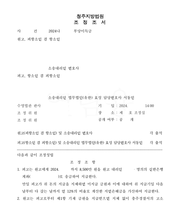 저는 즉각 응소하여 사건의 경위, 횡령 경위, 원피고의 관계 등을 중점적으로 주장 입증하였고 법원은 의뢰인이 원고에게 상당 부분 감액된 금원을 지급하고 원고는 민사소송과 형사고소를 취하하는 내용의 조정을 하였습니다.