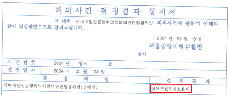 하지만 사건 의뢰 후 갑자기 의뢰인에게 성매매 혐의에 대해 기소유예를 한다는 검찰 처분문서가 갑자기 도착했습니다. 알고보니, 의뢰인은 ①, ②, ③ 세번에 걸쳐 성매매를 했고, ①에 대해서 기소유예를 받은 이후 ③ 행위가 적발되어 의뢰인과 아버지와 방문한 것인데, 사실 의뢰인이 이미 적발된 ② 행위에 대해 아버님께 비밀로 하던 중 나중에 드러난 것이었습니다.