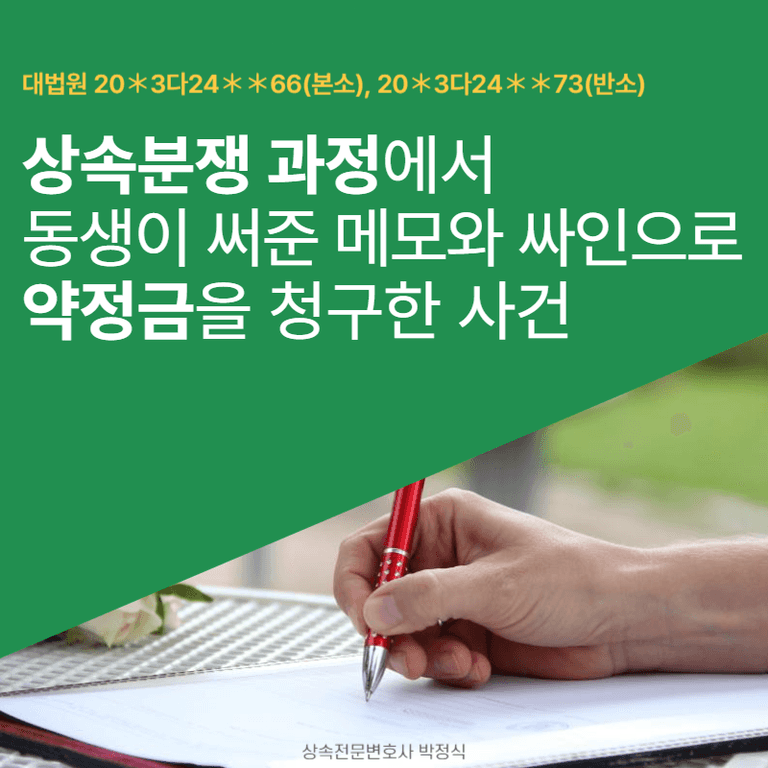 원고는 이 문건을 합의서라고 주장하면서 피고를 상대로 약정금을 청구하는 소송을 제기하였고, 피고는 원고의 소송에 대하여 오히려 피상속인의 재산상속 과정에서 원고로부터 받을 돈이 있다는 취지로 반소를 제기하였습니다.