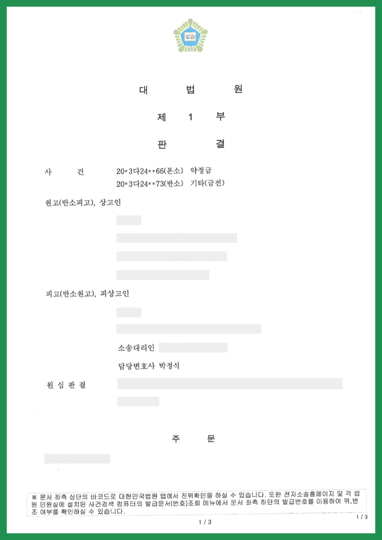 ③ 2차 협의서의 내용대로 피고이 반소청구 인용금액을 증액한 원심의 판단을 모두 유지하면서 원고의 상고를 기각하였습니다.