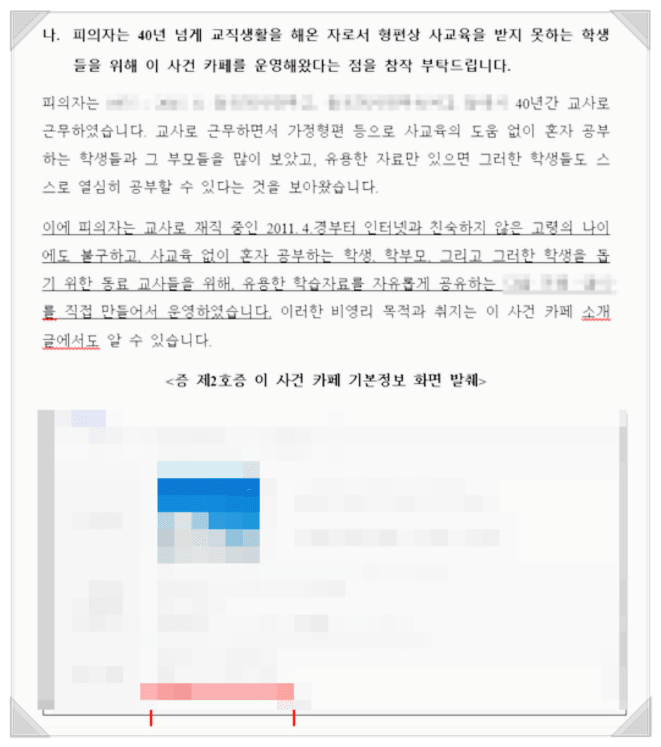 예시로 저희가 해결한 사건을 말씀드리자면 '의뢰인이 교사로서 교육자료를 목적으로 학생들에게 무단 배포'한 사례가 있지요.