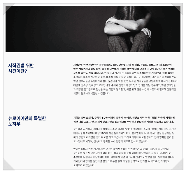 실력 있는 조력자와 제대로 된 상담 1차례만 받아도 '내가 정말 저작권법 위반에 해당하는지' 명확한 판단을 내려줄 수 있기에 권유 드리는 것이지요.