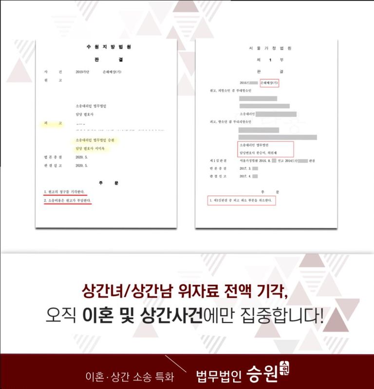 오늘은 저희 법무법인 승원에서 실제로 진행했었던 부정행위위자료방어 성공 사례를 살펴보는 시간을 가져보았습니다.