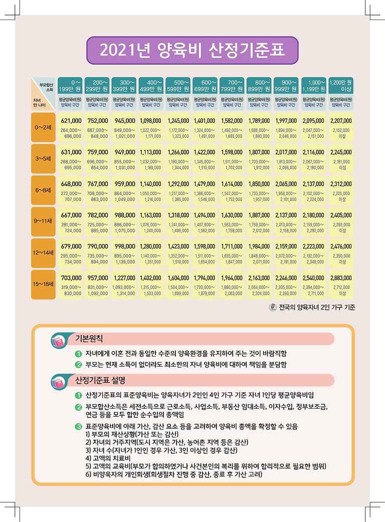 ↳ 서울가정법원 양육비 산정기준표 (2021년 이후 개정되지 않아 그대로 적용됩니다.)