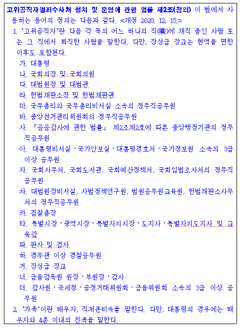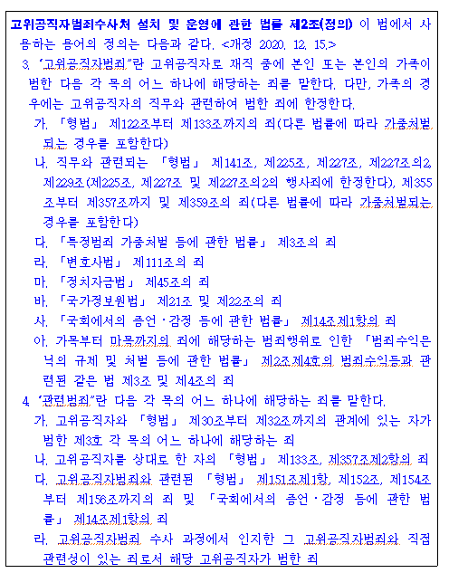 말 그대로 고위공직자만 수사대상으로 삼고 있지요. 예외적으로 공수처법에서 규정된 범죄에 대해서는 고위공직자의 가족도 수사대상이 될 수 있고요.