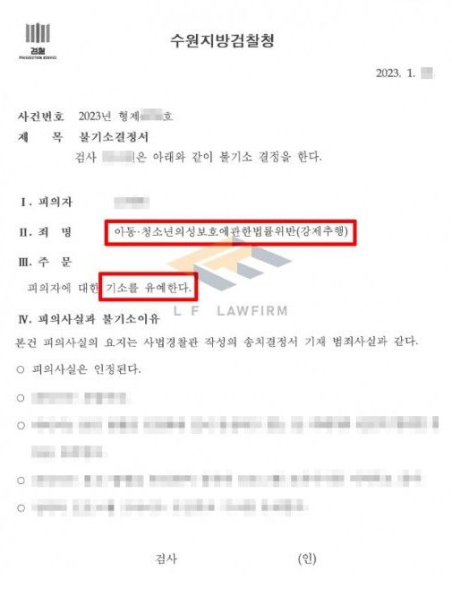 의뢰인은 익명인 랜덤 채팅어플을 통해 아동청소년인 피해자를 알게 되었고, 피해자를 한 공원에서 만난 뒤 피해자와 이야기를 나누던 과정에서 피해자의 가슴을 만지고, 키스를 하고 끌어안는 등 하였고, 이에 피해자로 부터 강제추행으로 고소를 당하여 아동청소년의성보호에관한법률위반(강제추행)죄로 수사기관의 조사를 받게 되었습니다.