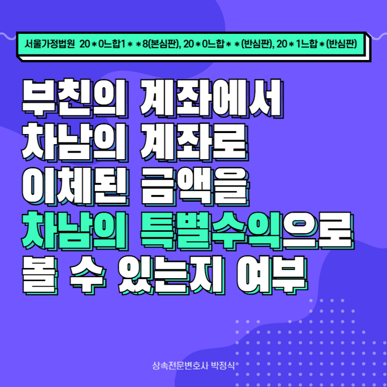 ③ 피상속인의 사업을 물려받은 차남의 사업용 계좌로 피상속인이 입금한 금액을 모두 차남의 특별수익으로 볼 수 있는지 여부 등이 문제되었습니다.