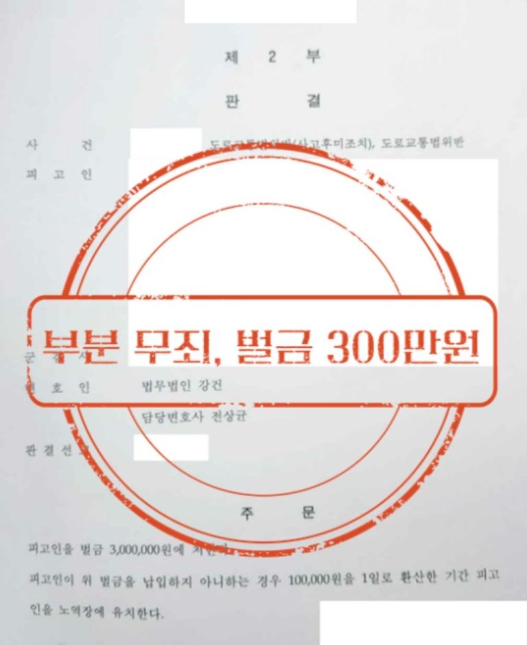 사고후미조치에 대한 것은 벌금 300만원의 판결을 선고했습니다.