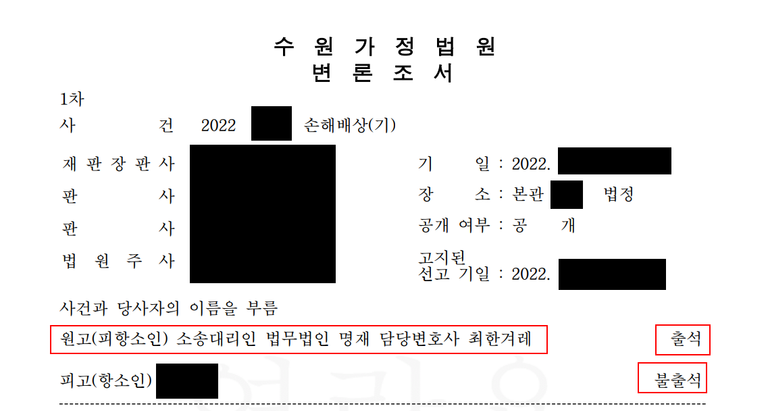 의뢰인은 이혼했기에 항소심 재판은 가정법원에서 진행됩니다.