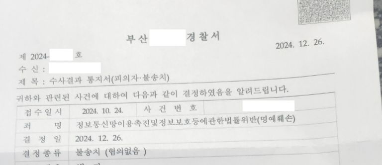 며칠 전 정통망법위반(명예훼손) 무혐의 불송치 결정을 받아 성공사례를 소개하고자 합니다.
