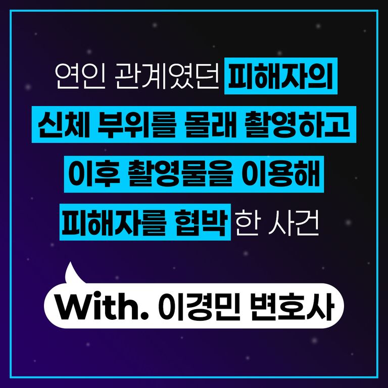 연인 관계였던 피해자의 신체 부위를 몰래 촬영하고 이후 촬영물을 이용해 피해자를 협박한 사건