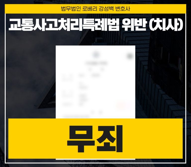 그 결과 재판부는 교통사고 전문 강성백 변호사의 모든 변론을 수용하였고, "교통사고처리특례법 위반 (치사)"에 대한 의뢰인의 혐의에 무죄 판결을 내려, 무사히 일상으로 복귀할 수 있었습니다.