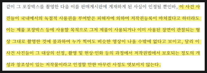 그렇기에 저작권법 위반으로 인정되기 위해서는 우선 개성과 창조성이 존재하는 저작물인지를 필수로 확인해 보셔야 하지요.