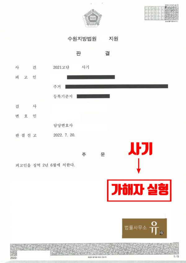 해당 사건에 대한 경험이 풍부한 법률사무소 유(唯)의 형사전문변호사는 의뢰인과의 상담 등을 통해 신속하고 정확하게 사건을 파악한 후 고소장을 제출하였고, 경찰조사에 동석하여 피해가 지속적이고 중한 점, 범죄수법이 악랄한 점, 죄질이 나쁜 점 등을 강조하면서 가해자의 인신 구속이 필요함을 적극 주장하였습니다.