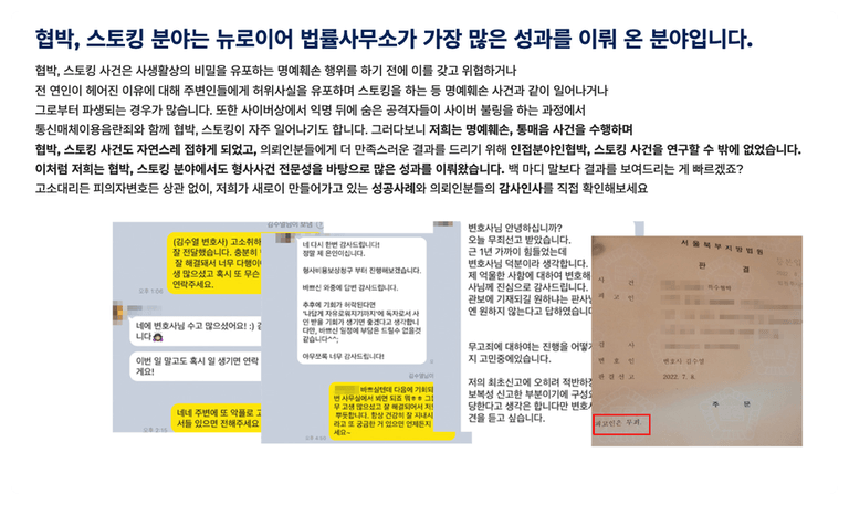 실제로 저희가 스토킹 사건에서 무혐의, 공소기각으로 마무리한 노하우를 모두 공개하겠습니다.