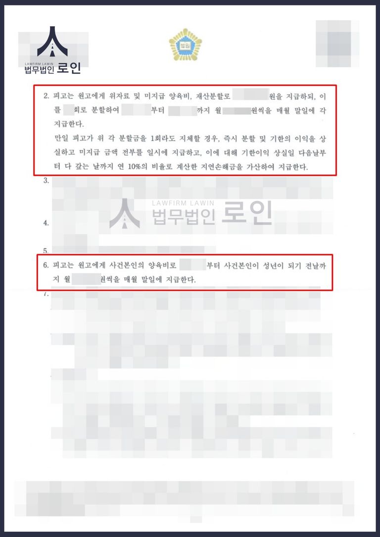 그 결과 미지급 양육비 및 재산분할금은 분할납부하고, 앞으로 지급해야하는 양육비 또한 경제적 사정을 고려해 감액하는 것으로 조정이 성립되면서 사건이 성공적으로 마무리되었습니다.