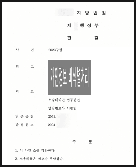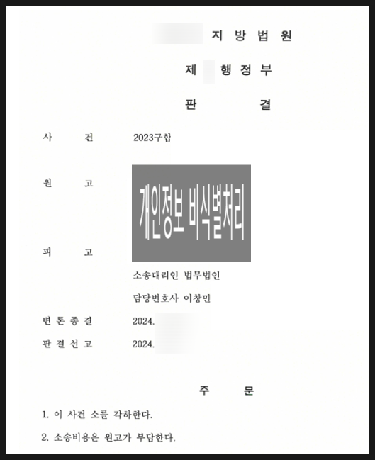 오늘은 공공기관을 대리하여 수행한 행정소송에서 각하판결로 전부 승소한 사례를 하나 소개해드릴까 합니다.