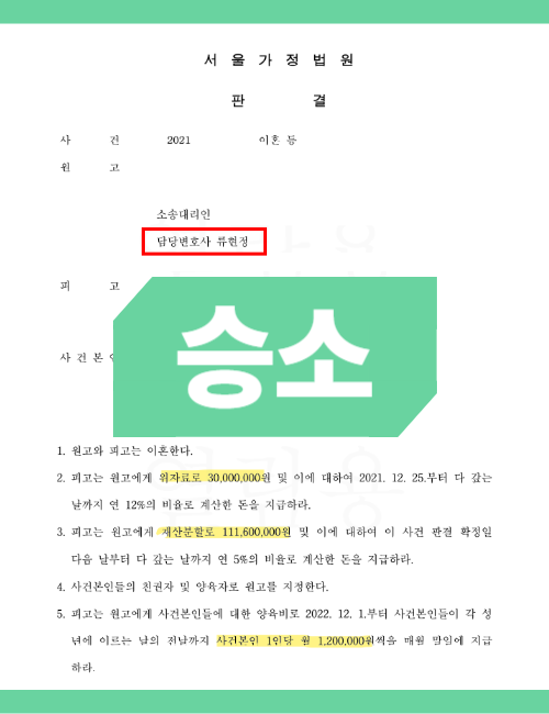 법무법인 새움에서는 B씨가 매장용으로 이용하는 계좌를 분석하여 실질소득을 밝혔고 자녀 1인당 120만 원씩 양육비를 지급하라는 판결을 이끌어낼 수 있었습니다.