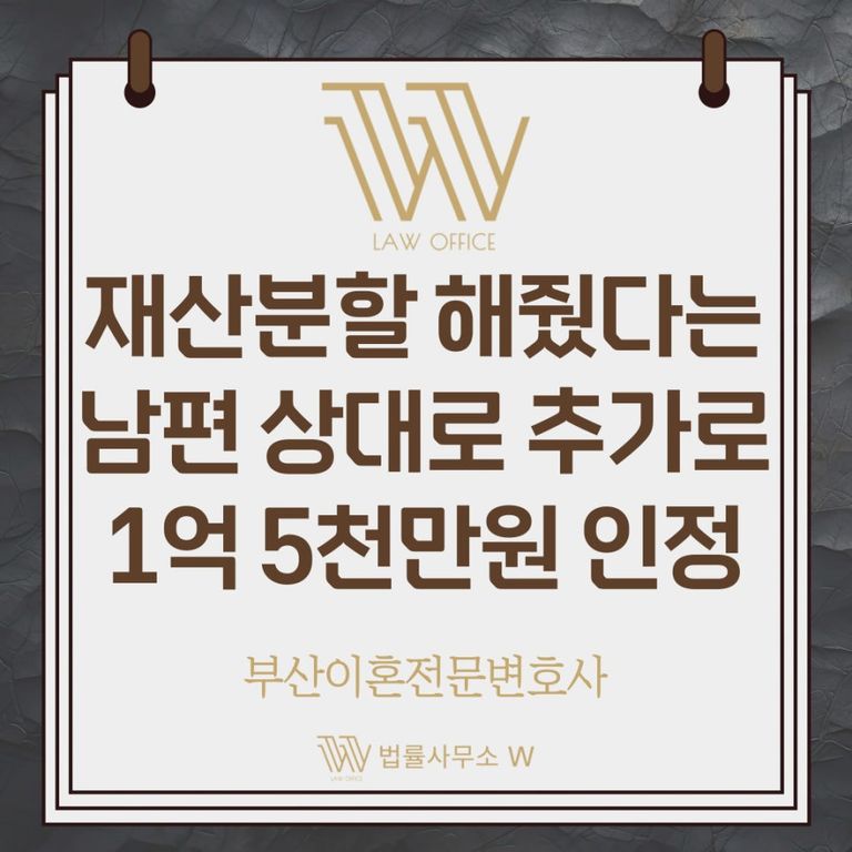 오늘은 이미 재산분할 해줬다는 남편을 상대로, 부산이혼전문변호사의 도움을 받아 추가로 1억 5천만 원을 받은 사례를 소개해 드렸습니다.