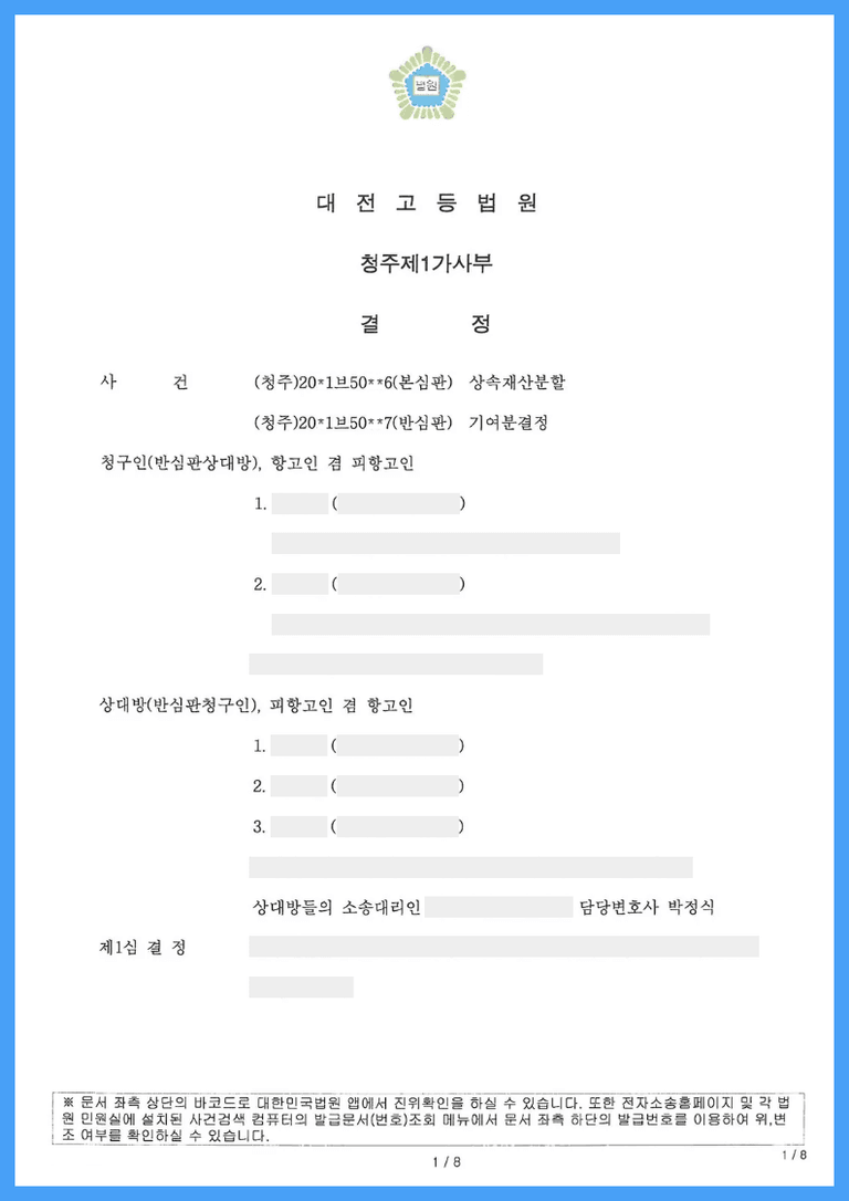안녕하세요, 상속전문변호사 박정식입니다.