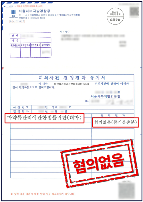 이로써 의뢰인은 억울하게 마약 혐의로 처벌받는 상황을 피할 수 있었고 무사히 평온했던 일상으로 돌아갈 수 있었습니다.