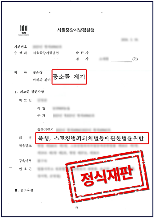 사건을 담당한 서울중앙지방검찰청에서는 이와 같은 내용을 읽고 전 남자친구에게 구공판 결정을 내려주었습니다.