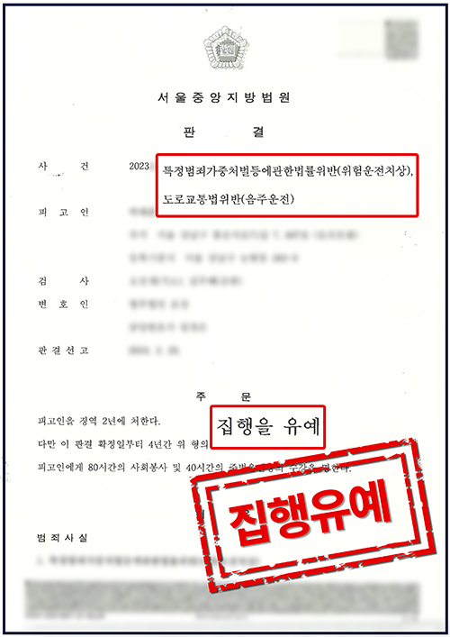 실형 선고 가능성이 매우 높은 사안이었으나 교통범죄 분야에 능통한 변호인과 신속하게 함께 하여 이례적인 집행유예 판결을 만들어낼 수 있었습니다. 만약 비슷한 상황에 놓여있다면 저희 같은 베테랑과 함께 하시기를