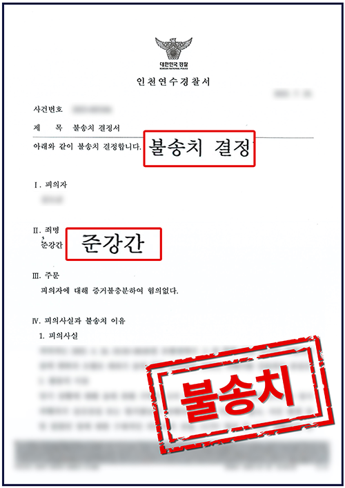 이내 의뢰인에게 무혐의 불송치 결정을 내려주었습니다.
