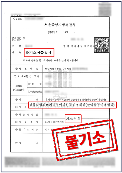 이후 수사기관에 제출한 변호인의견서 속에는 의뢰인과 피해자가 원만히 합의하였다는 점과 의뢰인이 초범이라는 점, 촬영물은 피해자의 동의 하에 찍은 것이라는 점, 실제로 촬영물을 일체 유포하지 않은 점, 의뢰인이 반성하며 재범방지 교육을 이수 중이라는 점 등을 주장하였습니다.