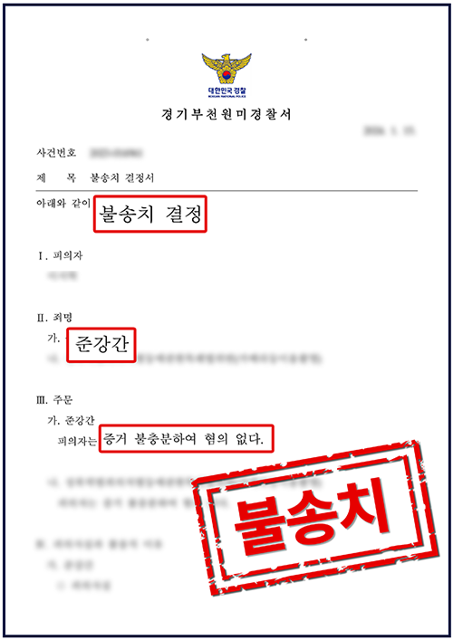 사건을 담당한 경기부천원미경찰서는 다음과 같은 변론을 인정하며 의뢰인에게 무혐의 불송치 결정을