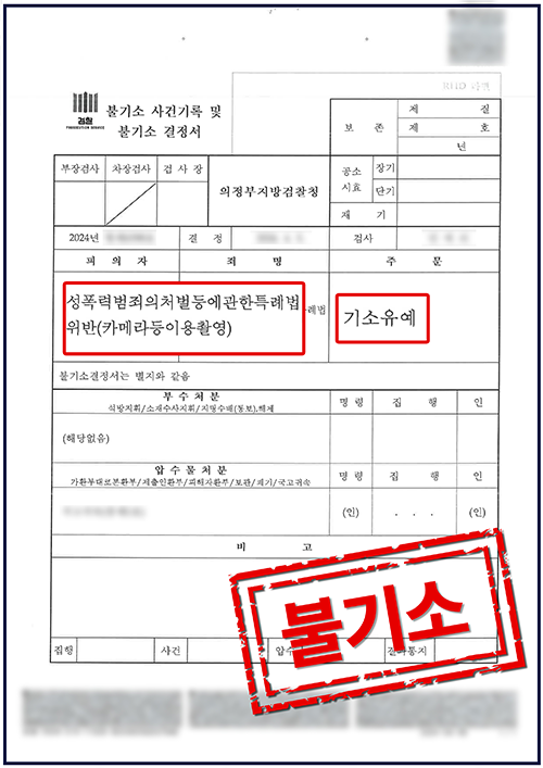 사건을 담당한 의정부지방검찰청은 이와 같은 의견을 받아들이며 의뢰인에 대하여 기소유예 처분을 내렸습니다.
