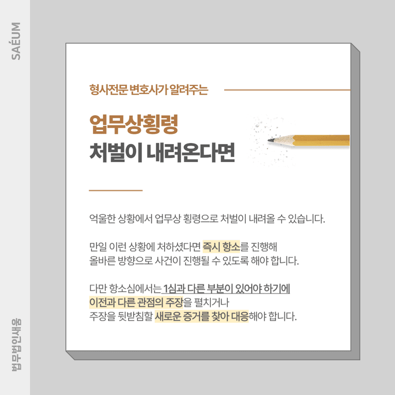 다만 항소할 때는 1심과 다른 부분이 있어야 하므로 이전과 다른 관점에서 주장하거나 혹은 새로이 뒷받침해 줄 수 있는 증거를 찾고 이를 기반으로 대응에 나설 수 있도록 해야 합니다.