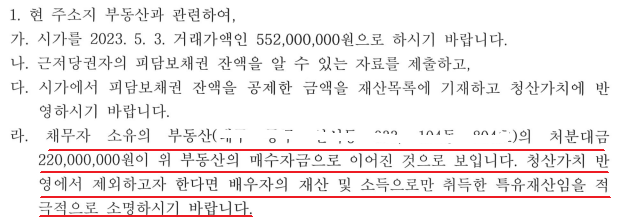 부동산담보대출의 이자를 누가 부담하고 있는지, 채무자와 배우자의 다른 재산과 소득에 대해 철저한 소명을 요구하며 적극적으로 소명하는 것을 요구하고 있습니다.